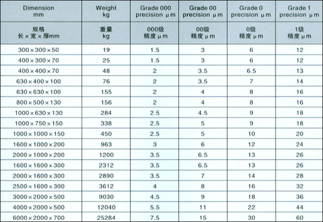 铆焊铸铁平台的精度:按国家标准计量检定规程执行,分别为0、1、2、3四个等级。通常根据《中华人民共和国机械行业标准》JB/T 7974—2000设计,按国家GB4986-85标准制造